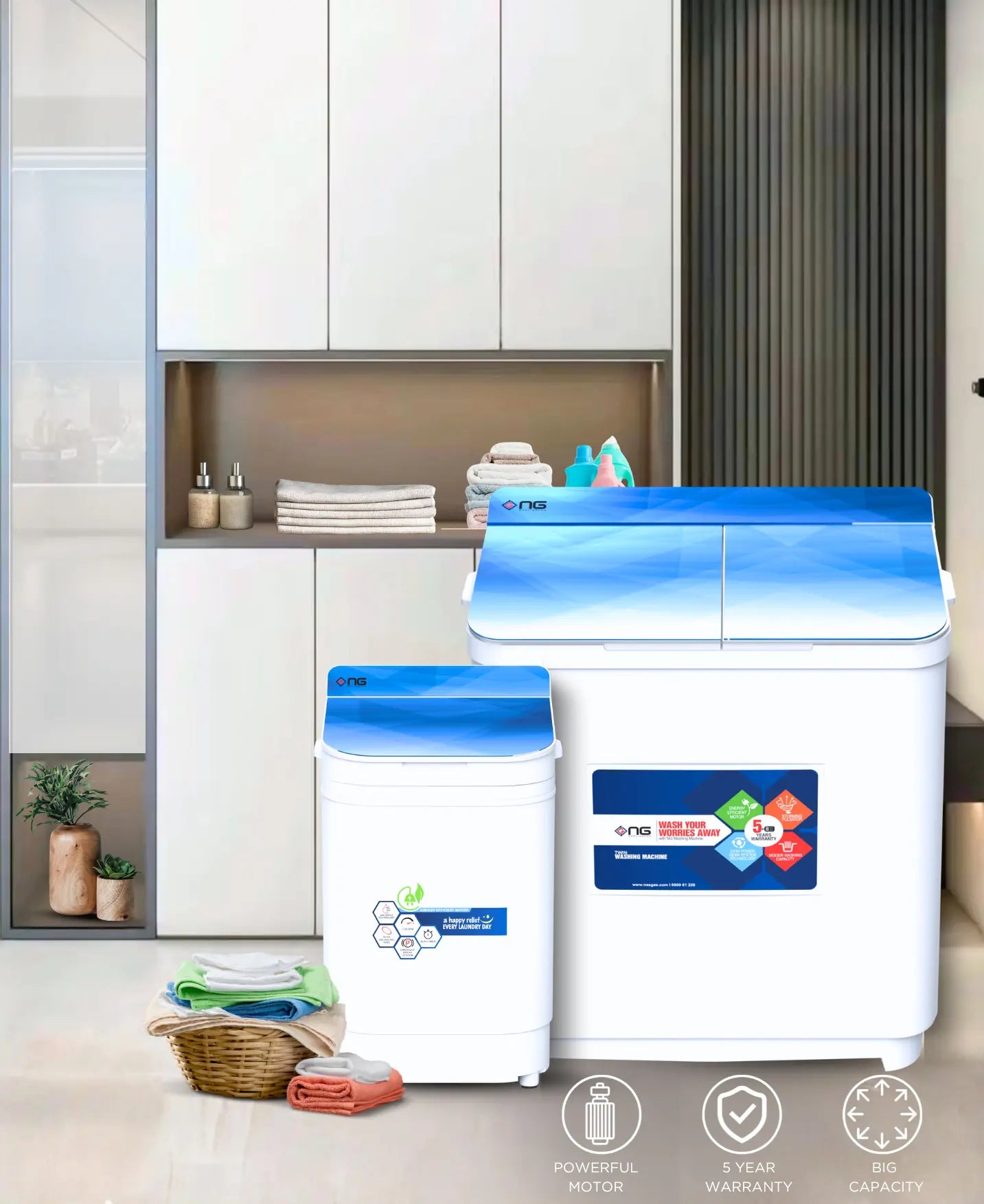 NasGas NWM-501 15Kg Semi-Automatic Washing Machine – Glass Top Double Body